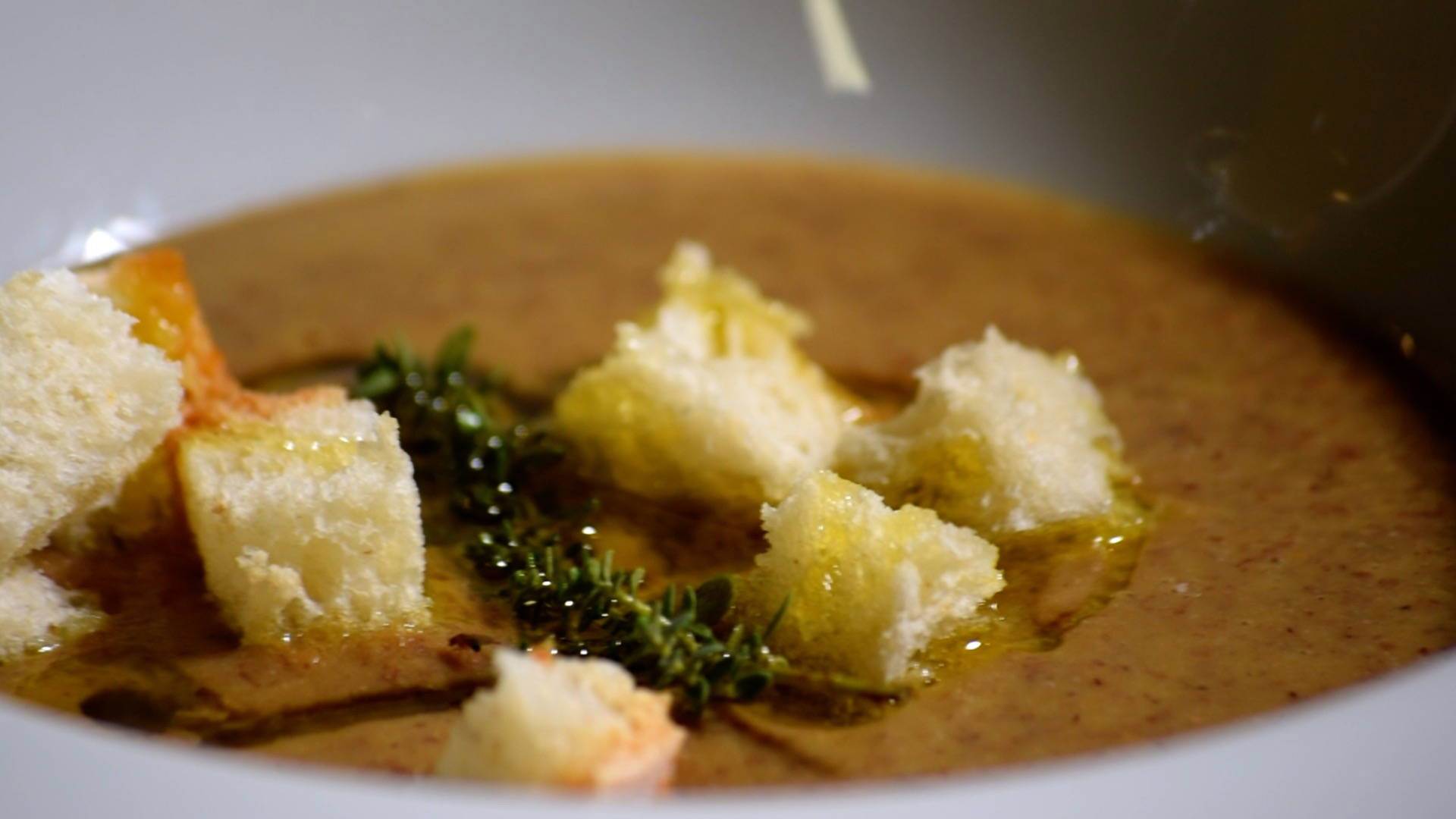 - Für den Bratensatz muss eine gesonderte Absprache getroffen werden: Für die Linsensuppe wird ausschließlich nativesolivenöl extra verwendet, dessen hoher Rauchpunkt eine perfekte Bräunung des Gemüses ermöglicht.