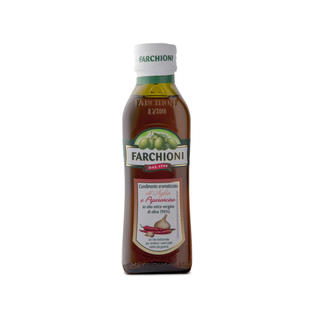 Würze auf Basis von nativem olivenöl extra, angereichert mit natürlichem Knoblauch- und Chiligeschmack. Es enthält auch zerstoßenen getrockneten Knoblauch und getrocknete Chilischoten für einen intensiven, würzigen Geschmack. Ideal für alle, die ein vielseitiges Gewürz suchen, das ihrer Küche Charakter und einen Hauch von Schärfe verleiht.