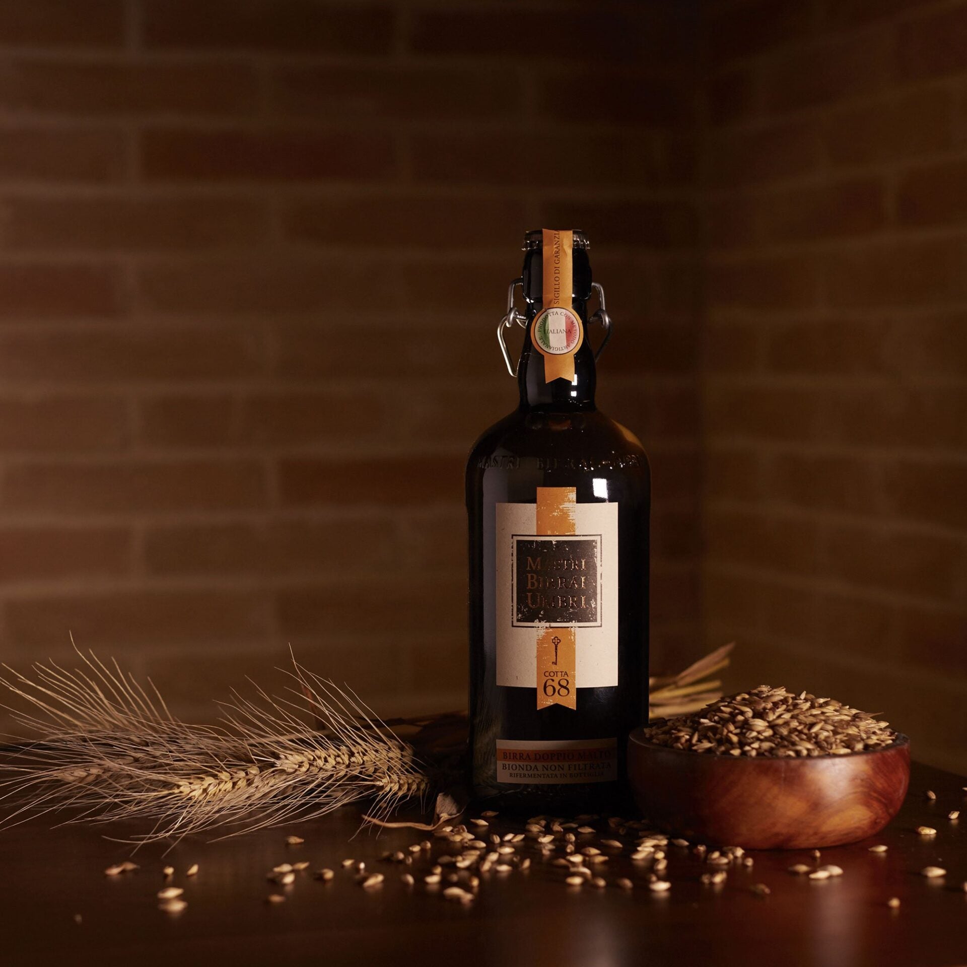 Unfiltered Double Malt Blonde Craft Beer that is inspired by the Strong Ale tradition. The bitter, intense flavor of barley malt is accompanied by the fresh, fruity aroma of hops and a white, persistent foam.