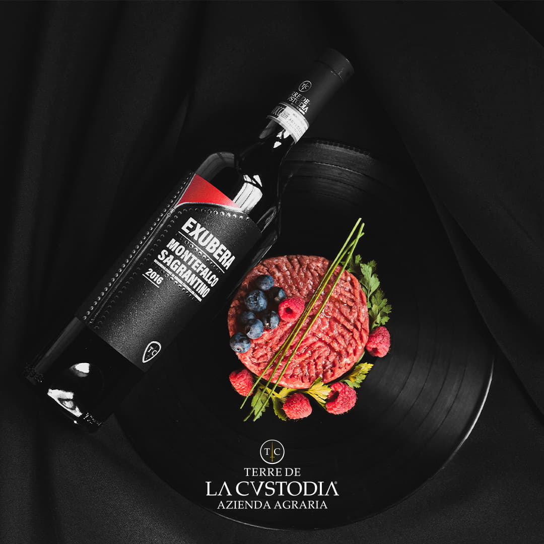 Red wine produced from a selection of Sagrantino grapes, grown in an indigenous vineyard with ideal exposure in the hills of Montefalco in Umbria. The full-bodied, smooth taste is accompanied by the fruity, spicy aroma.