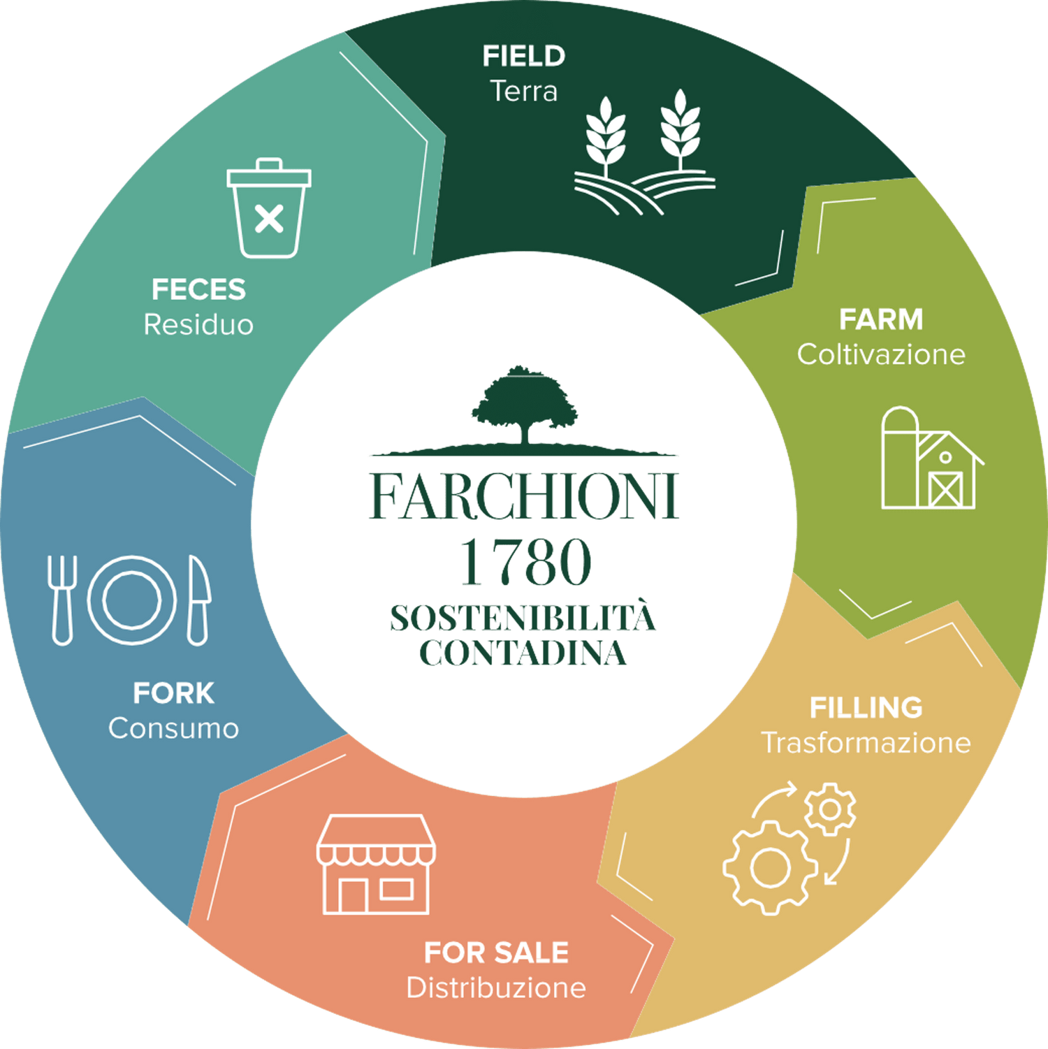 Farchioni, avec l'"autarcie ouverte", vise l'autosuffisance totale en ce qui concerne la production primaire de produits agricoles et leur transformation ultérieure , en contrôlant toutes les phases de la production. En même temps, elle n'offre au consommateur que le produit prêt à l'emploi, sans gaspillage.