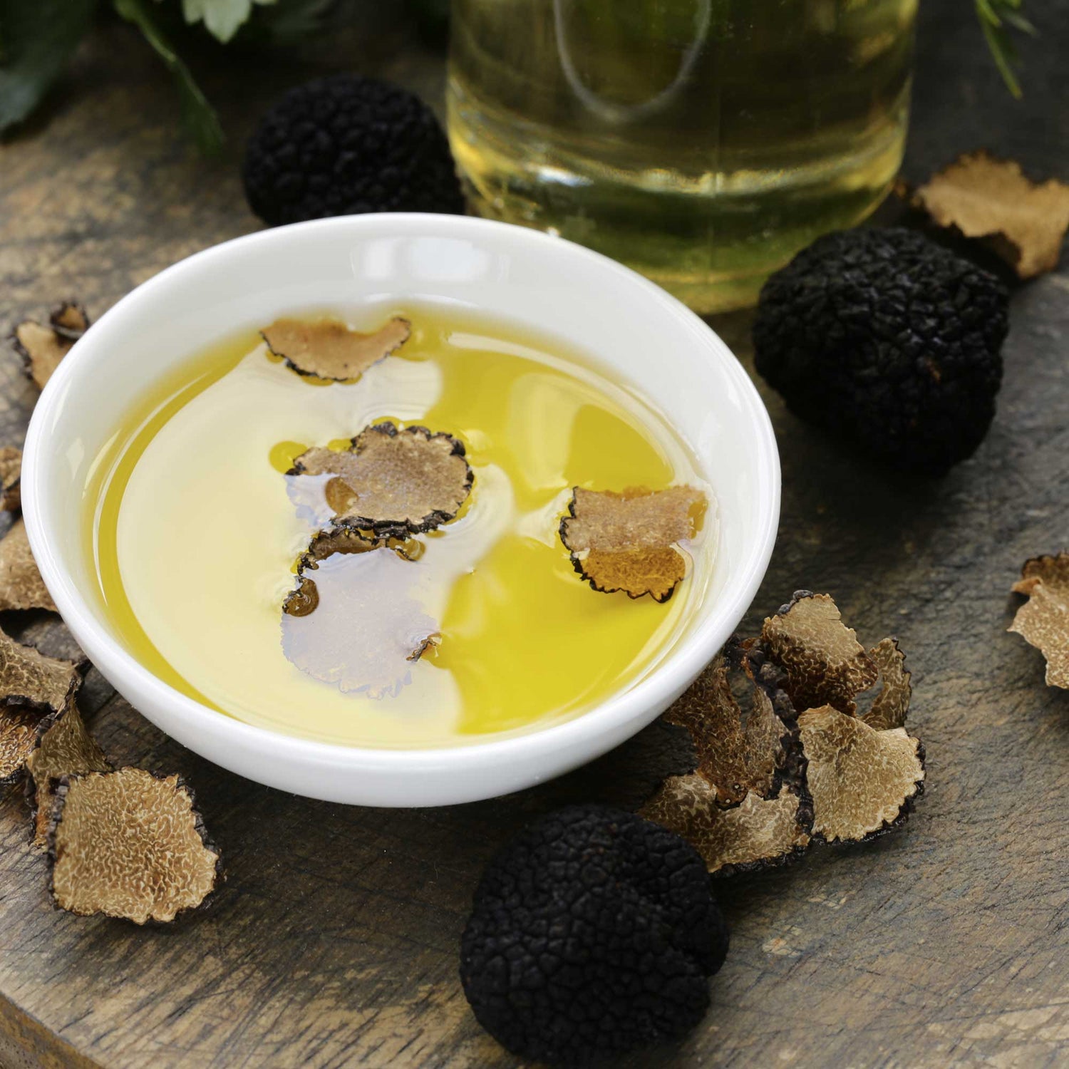 huile d’olive olive extra vierge, truffe noire