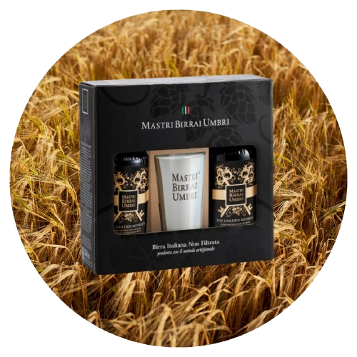 Bis di Birra Artigianale Italiana in confezione regalo con 1 bicchiere con logo Mastri Birrai Umbri.