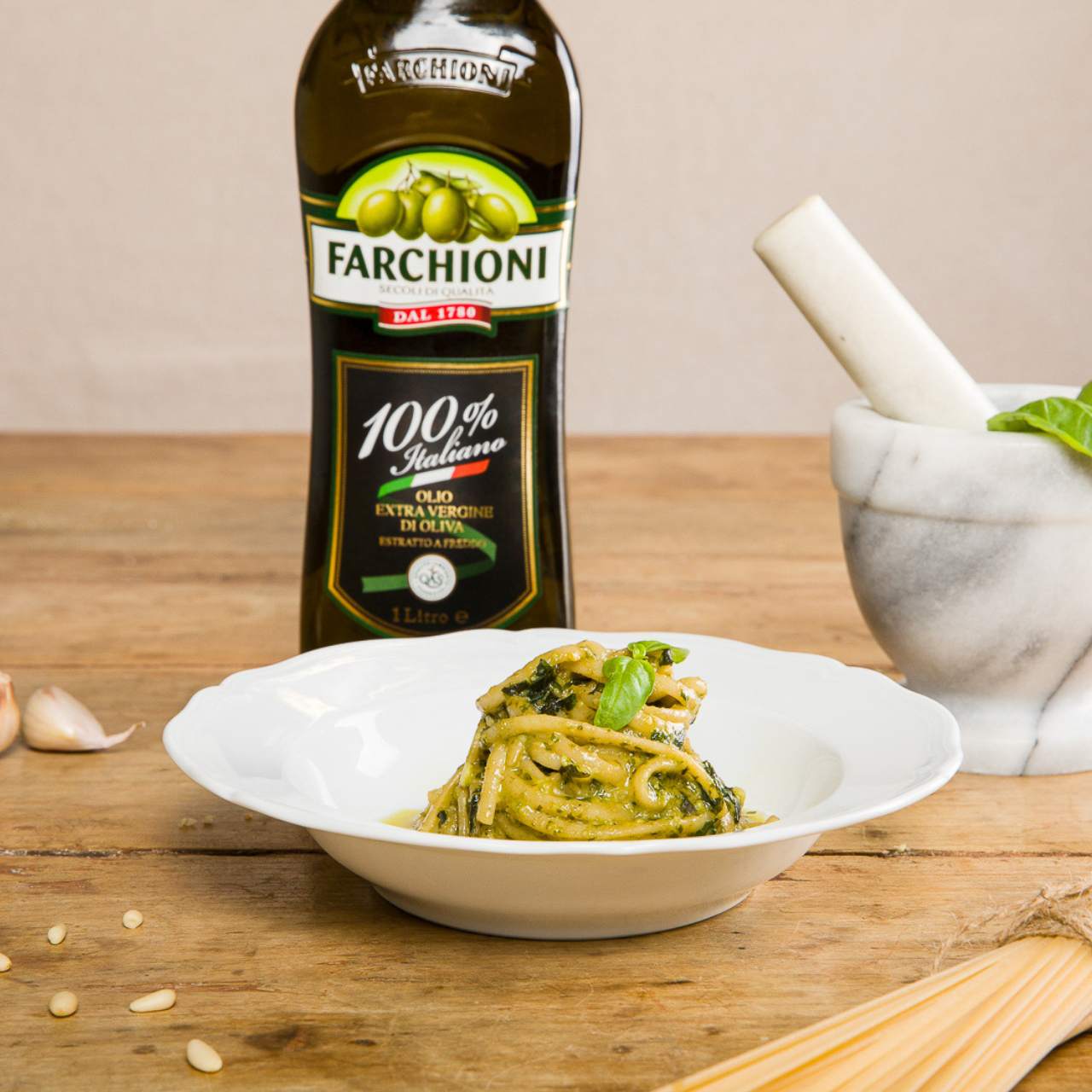 Olio Extra Vergine 100% Italiano che nasce dall'esperienza della Famiglia Farchioni. Viene prodotto con olive coltivate nelle migliori zone di produzione e lavorate esclusivamente in territorio italiano. Il gusto piacevolmente intenso è accompagnato da un aroma di fruttato fresco.